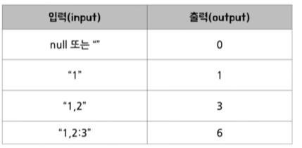 쉼표(,) 또는 콜론(;)을 구분자로 가지는 문자열을 전달하는 경우 구분자를 기준으로 분리한 각 숫자의 합을 반환