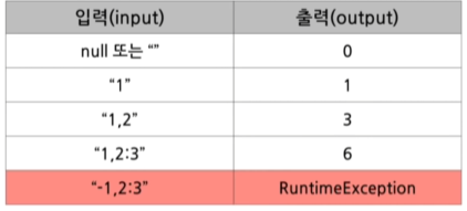 숫자 이외의 값 또는 음수를 전다라하는 경우 RuntimeExcetpion 예외를 throw한다.