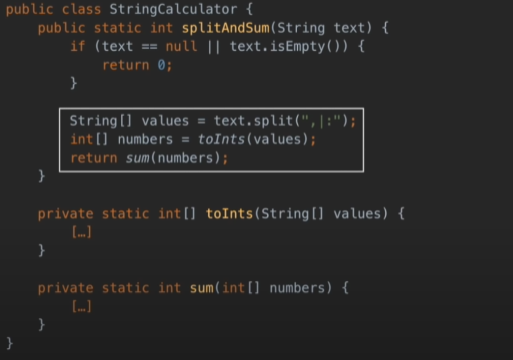 메소드(함수)의 의도가 잘 드러나도록 동등한 수준의 작업을 하는 여러 단계로 나눈다.