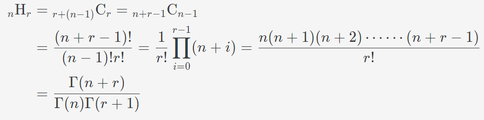 중복조합의 수식은 다음과 같다.